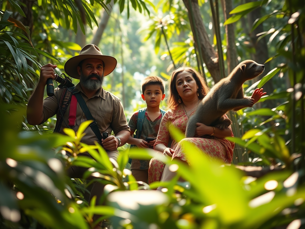 Heureusement, les exilés croisent la route d’un personnage hautement symbolique : Guapo, un Indien fidèle et débrouillard, véritable encyclopédie vivante de la jungle. Grâce à ses connaissances des plantes, des animaux et des moyens de subsistance, il aide la famille à s’adapter, à construire un abri, à chasser, à éviter les pièges naturels, et à apprivoiser leur environnement hostile.
